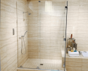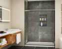 Hydroslide Sliding Shower Door Kits were designed for full-standing showers or above bathtubs. The Hydroslide System can accommodate a wide range of shower designs with fixed glass panels on either end or both sides at 90 or 180 degrees. The Hydroslide System also accommodates the option of floor-to near-ceiling glass panels with a sliding door. Hydroslide Sliding Shower Door Kits feature the latest European 'all-glass' look. Kits are available in either 60" (1.52 m) or 84" (2.13 m) widths. Installers can cut the width to size, and height is optional as long as the sliding door glass weighs less than 88 pounds (40 kg).